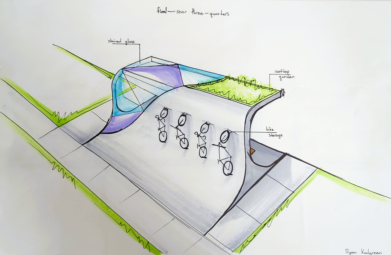 This was our first project where perspective sketching was introduced, and we had to deliver several different views of our final design.