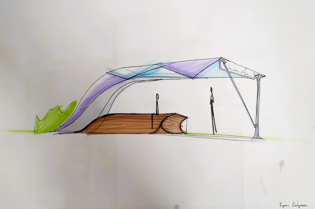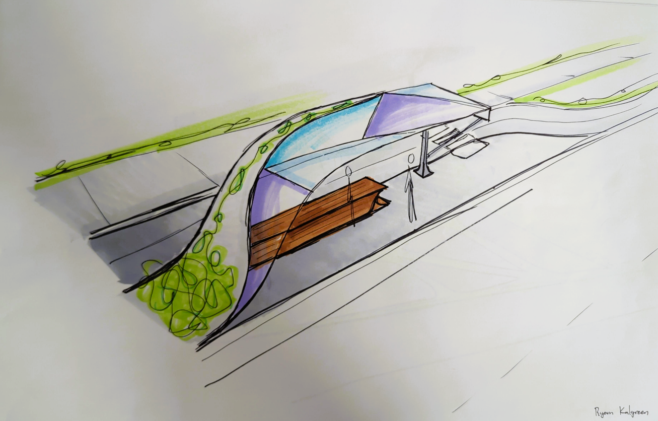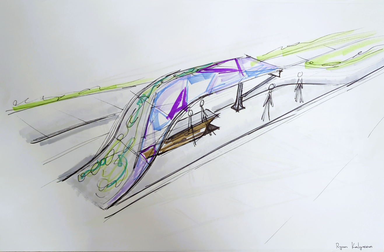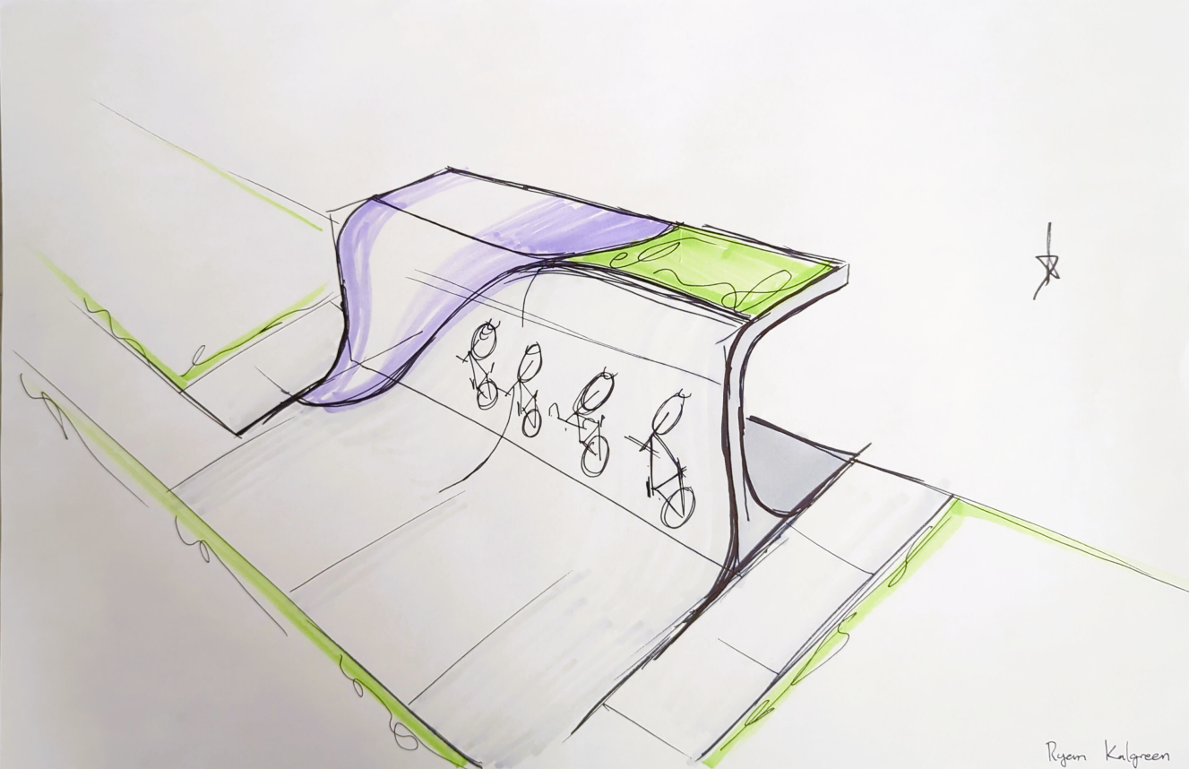 For a class called Introduction to Industrial Design Methods, one of the projects was to develop a design for a bus stop on Northwestern’s campus. Design work took place over several weeks, and we were challenged to incorporate elements of existing campus architecture, university iconography, as well as features/amenities we would like to see.
