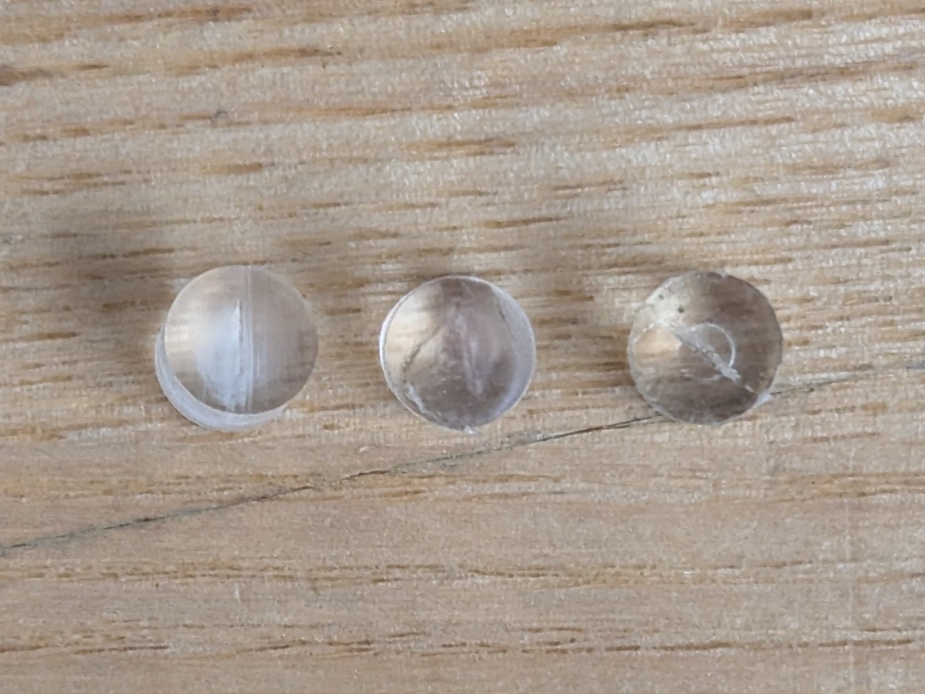 Our next approach was to cast the wire in epoxy in a nut. Centering the wire while the epoxy cured was imprecise, and we couldn’t get bubbles out of the epoxy.