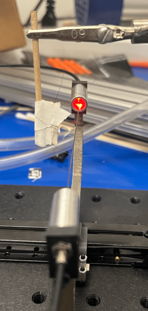 The fiber optic and wire mounting was the most challenging part of this project. Getting the wire precisely centered and secured in the beam and then being able to align both ends was difficult.
